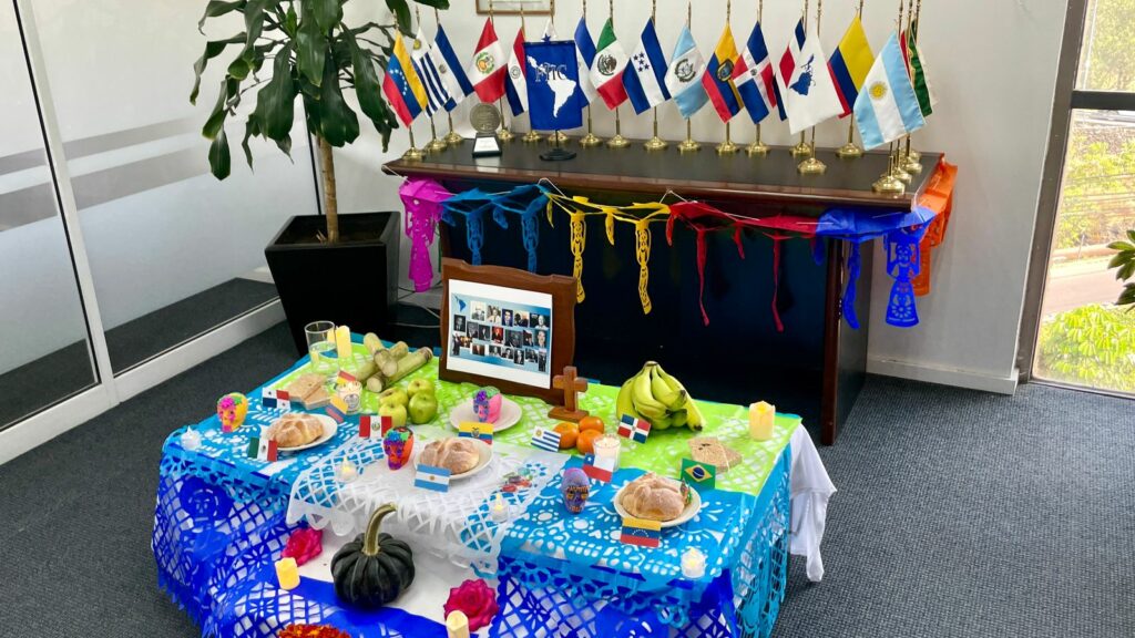 En la Secretaría General, sede de la FIIC, también celebramos esta tradición con una pequeña ofrenda dedicada a los líderes y fundadores de nuestra organización. Con este gesto honramos su visión, su compromiso con la industria de la construcción en la región y el camino que trazaron para fortalecer la integración y cooperación entre nuestros países.